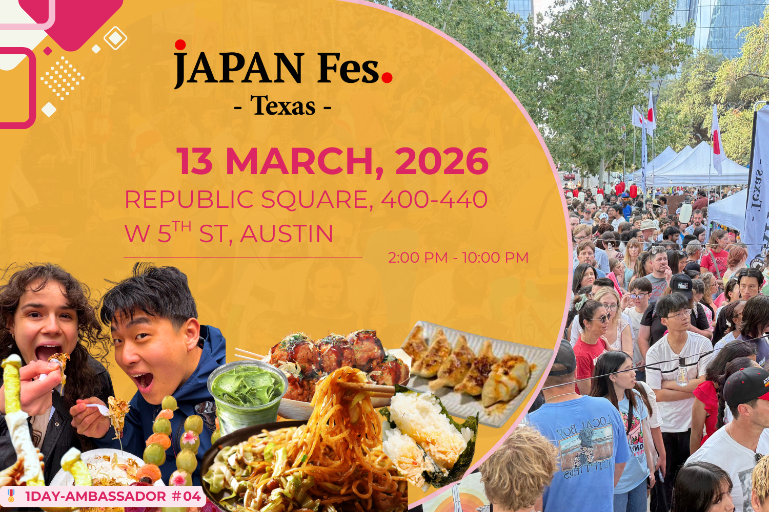 JAPAN Fes renowned as the world's largest Japanese food festival, with over 1,000,000 projected annual attendees and 2,000 vendors, we proudly host the world's largest Japanese food festival. Every Fes is set in a different neighborhood of NYC, introducing it to a slice of Japanese culture and cuisine. Our vendors have been featured in publications such as The New York Times, Food Network, and The Today Show as a testament to their dedication of serving the best representation of Japanese cooking. After great debut in Austin, we decided to host more events there in 2026! Come try the best of Japan! 💗